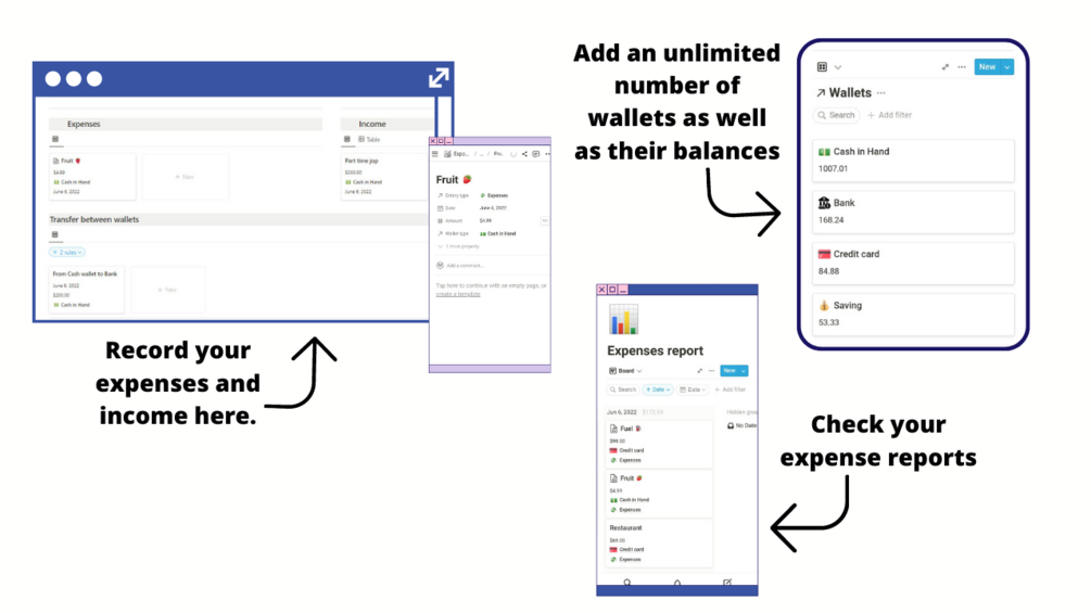 - You can set a budget for your expenses and follow the budget consumption with each expenditure on the home page.